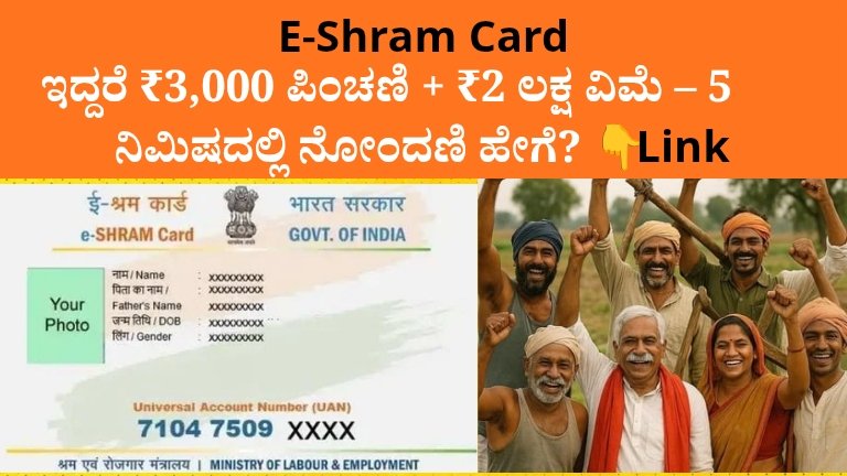 E-Shram Card 2026: ಈ ಕಾರ್ಡ್ ಇದ್ದರೆ ₹3,000 ಪಿಂಚಣಿ ಮತ್ತು ₹2 ಲಕ್ಷ ವಿಮ ಭಾರತದಲ್ಲಿ ಲಕ್ಷಾಂತರ ಜನರು ಅಸಂಘಟಿತ ವಲಯದಲ್ಲಿ ಕೆಲಸ ಮಾಡುತ್ತಿದ್ದಾರೆ. ದಿನಗೂಲಿ …